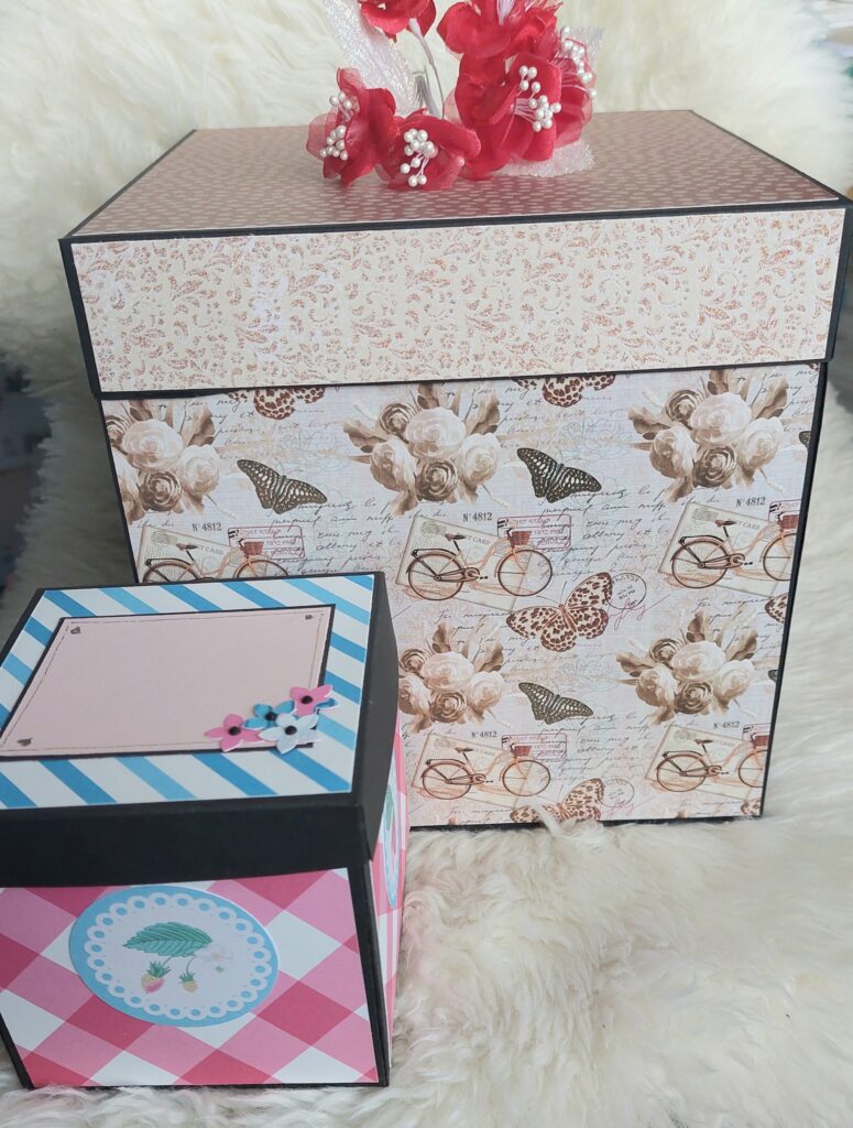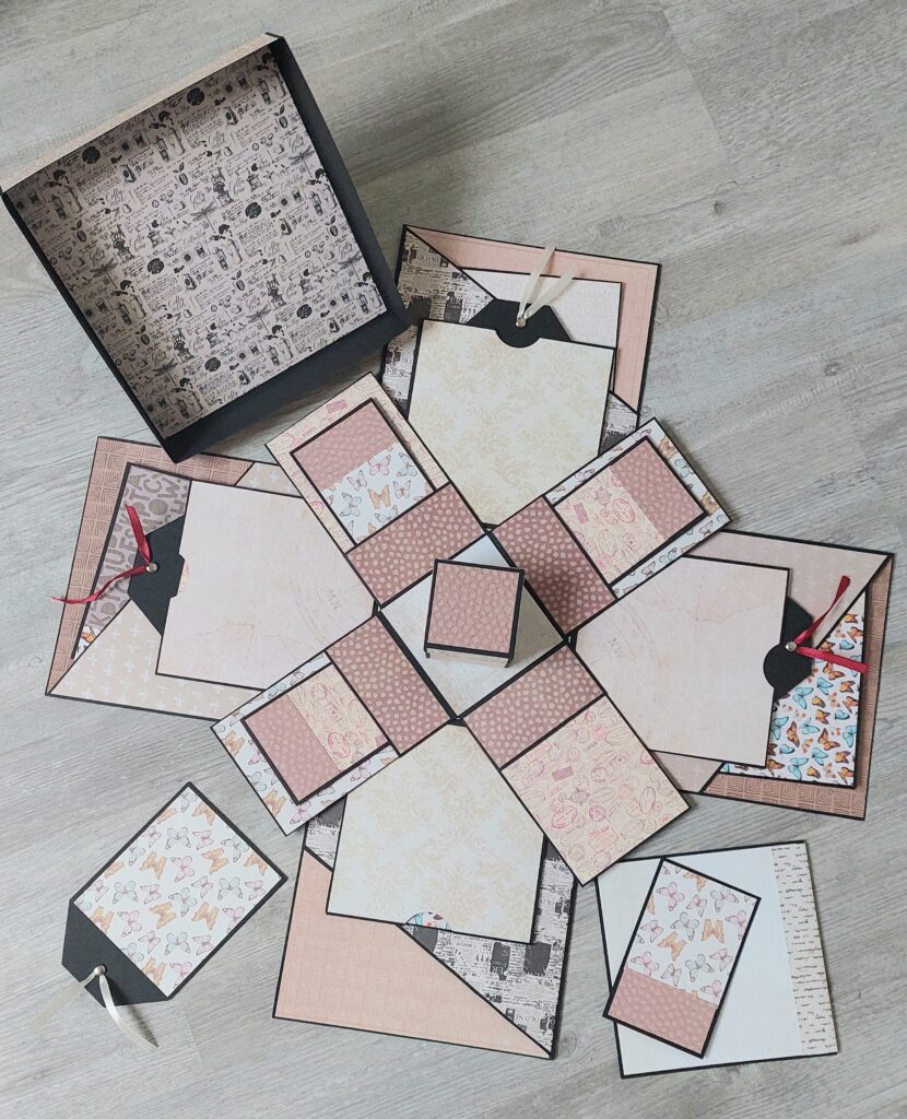 Marieke (46 jaar) over workshop Explosionbox “Joy” : Afgelopen week de Workshop Explosion-box “Joy” gedaan, samen met een vriendin. Iris kwam bij ons op locatie. Heeft met heel veel liefde, geduld en zeer goede uitleg de workshop gegeven. Op alles voorbereid. Voor ieder een mandje met alle benodigdheden zoals, lijm, schaar, potlood, liniaal enz. Ook ieder een eigen papiersnijder. Duidelijke voorbeelden, waar je wel of juist niet moet knippen, vouwen en plakken. Veel keuze uit diverse papier patronen en kleuren. Heb genoten en ben trots op wat ik heb gemaakt. Het was een super leuke dag. De tijd vloog voorbij. Ik ga zeker nog meer workshops bij Iris boeken en beveel het iedereen aan. Kijk er nu alweer naar uit! (Maart 2025)