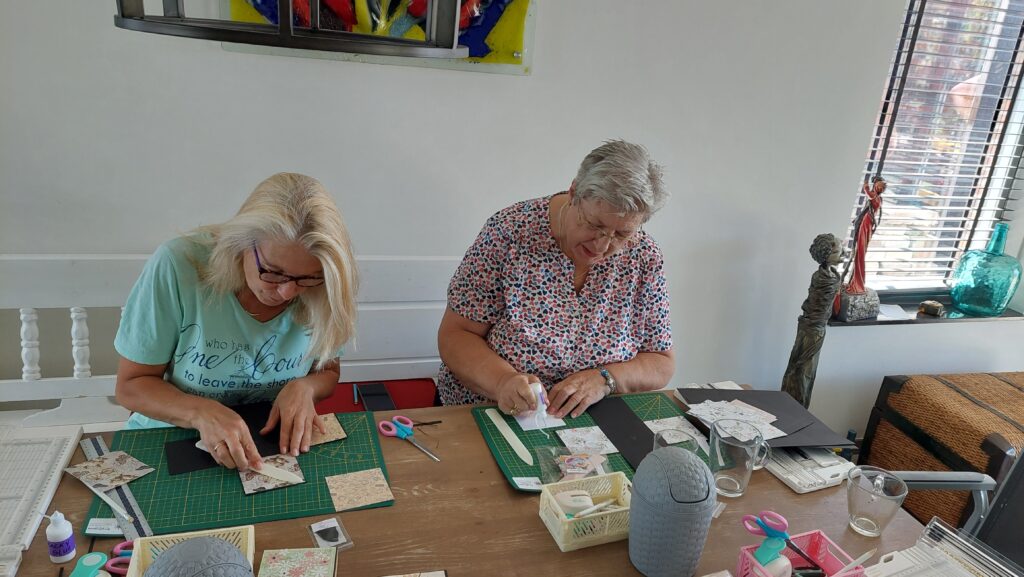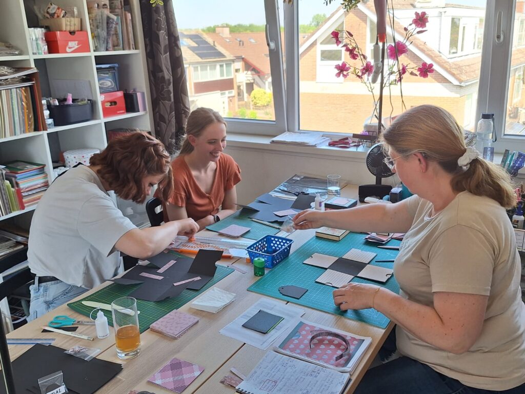 Moeder (58 jaar) en dochter (31 jaar) over workshop mini-scrapbook “Happy” : “Wij vonden de voorbereiding van jou erg goed, veel werk ook… Duidelijke uitleg voor en tijdens de workshop. Goed gestructureerd. Jij bent rustig en relaxt. Wij hebben echt een hele gezellige middag gehad. Het scrapboekje/fotoalbumpje was niet alleen leuker om te maken maar is ook mooier geworden dan wij hadden verwacht. Echte aanrader! (1 Augustus 2025)