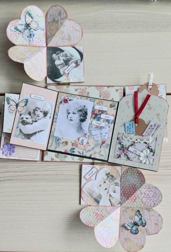 Bianca (50 jaar) over workshop Gatefold album “Bliss” : Met veel plezier heb ik de workshop Gatefold album gedaan. Het was een hele leuke workshop met een prachtig resultaat waar ik trots op ben. Iris had het allemaal tot in de puntjes goed voorbereid. Het materiaal lag allemaal klaar en we mochten zelf kiezen in welke stijl we het boekje gingen maken. Alles werd goed uitgelegd. De tijd vloog echt om. Het was erg leuk om te doen en ik ga zeker nog een keer een andere workshop doen! (Juni 2024)